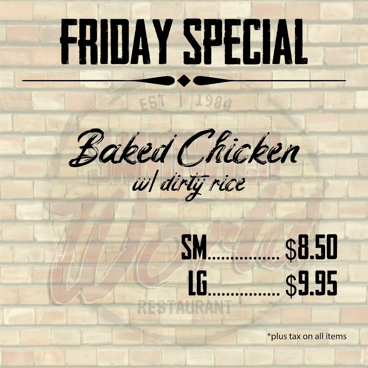 Introducing Sandwich World, a hidden gem nestled in Gramercy, LA, offering a tantalizing array of hearty sandwiches and delicious chicken dinners. Whether you're craving a classic hamburger or the zesty ½ Cajun Hamburger, this spot promises bold flavors that won’t disappoint. The menu boasts favorites like the Bacon Cheeseburger, grilled Chicken Fillet, and comforting grilled cheese, all expertly crafted with fresh ingredients and distinct seasoning.